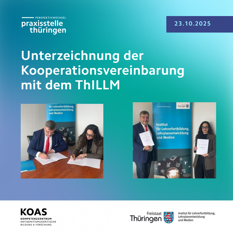 Unterzeichnung des Kooperationsvertrags des KOAS-Projekts »Perspektivwechsel – Praxisstelle Thüringen« mit dem ThILLM
