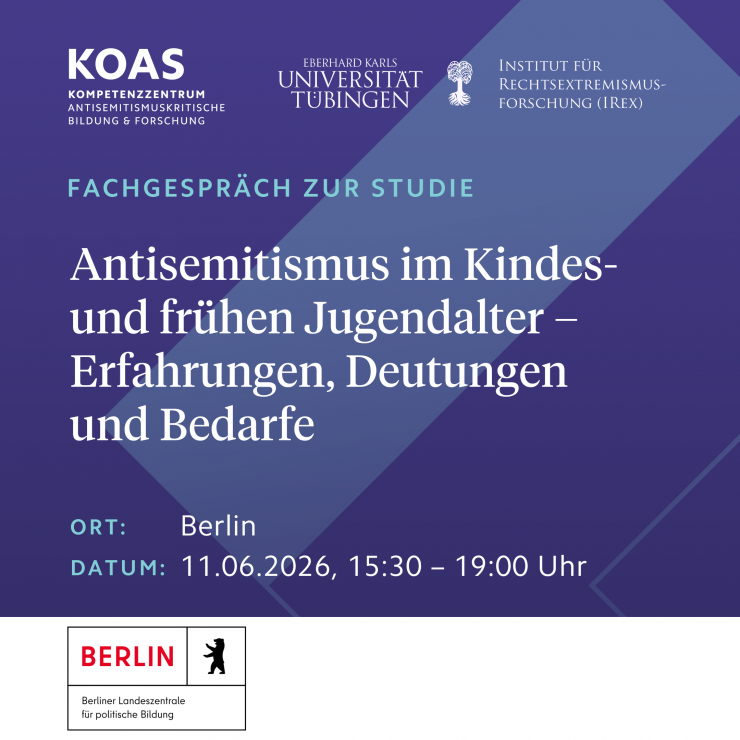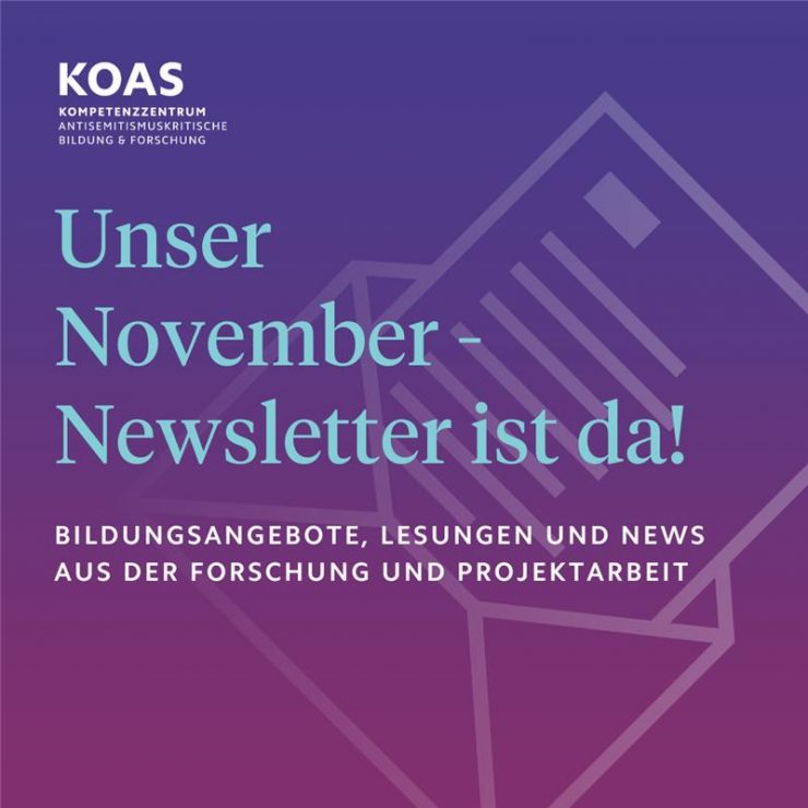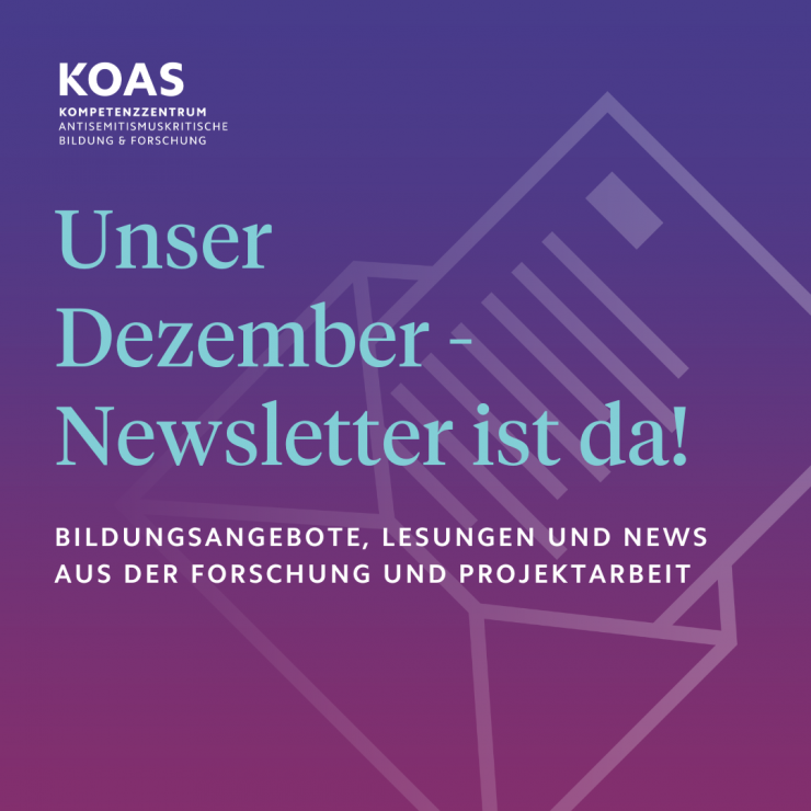 Das Kompetenzzentrum antisemitismuskritische Bildung und Forschung (KOAS) in Trägerschaft der Zentralwohlfahrtsstelle der Juden in Deutschland e.V. wurde 2014 in Berlin gegründet. Das Kompetenzzentrum entwickelt Bildungsprogramme und Bildungsprojekte, qualifiziert gesellschaftspolitische Akteur*innen und forscht gemeinsam mit der Fachhochschule Potsdam zu Antisemitismus in Institutionen. Seit Januar 2025 ist das Kompetenzzentrum Partner im Kooperationsverbund Antisemitismus (KOVA), gefördert durch das Bundesprogramm »Demokratie Leben!« des BMBFSFJ. Das Kompetenzzentrum sitzt in Berlin und wirkt bundesweit. Mit dem Dreiklang »Bildung, Forschung und Diskurs« setzt sich das Institut zum Ziel, das Feld der Antisemitismuskritik weiterzuentwickeln und diese Erkenntnisse im Rahmen von Fachkonferenzen, Studienberichten bzw. maßgeschneiderten Bildungs- und Diskursformaten in die Fachöffentlichkeit hineinzutragen. Vorträge, Workshops und Seminare können jederzeit angefragt werden.